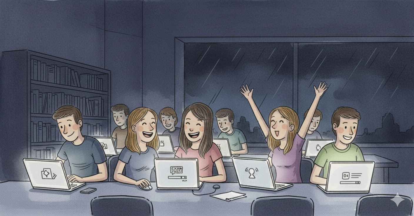 The Exam in a Box follows an easy process. Students can download the software in advance on their own device. Our solution fully supports the BYOD exams.